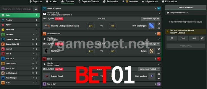 A aposta Bet01 oferece aos jogadores a experiência mais conveniente de apostas em eSports!